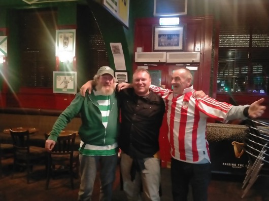 Me fui dando un paseo hasta el Brazen Head, mítico bar de la afición del Celtic de Glasgow, en la Cathcart 1,en el sur de Glasgow. Jugaba el Athletic el partido de liga y el recibimiento no pudo ser mejor. Disfruté de la victoria del Athletic con gente maravillosa… nos tomamos unos tragos, nos hicimos unas fotos y después volvi a St. George Square para hacer tiempo para ir al aeropuerto tomándome las últimas cervezas en Escocia.