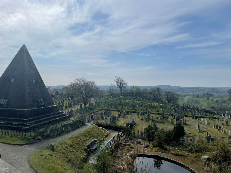 A la salida fuimos a la zona de la Necrópoli que está situada en un alto del que se ve toda la ciudad. Con casi 200 años de historia alberga las sepulturas de gente muy importante de Escocia.