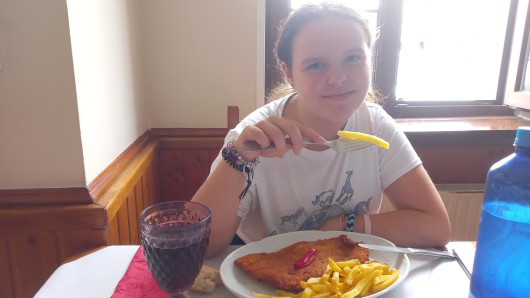 Como no, estando en Asturias… de primero unas fabes, de segundo cachopo y de postre natillas. Impresionante lo rica que estaba la comida.