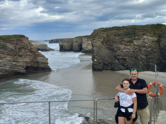 Continuamos el camino y en una hora ya pasando a la provincia de Lugo paramos en la archiconocida Praia Das Catedrais. Ya había estado con Saioa en este maravilloso lugar cuando era más pequeña.